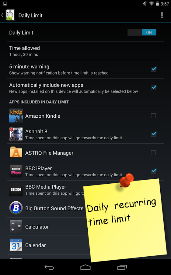 | The Daily limit setting, other settings for Bedtime and Schooltime are also available. |